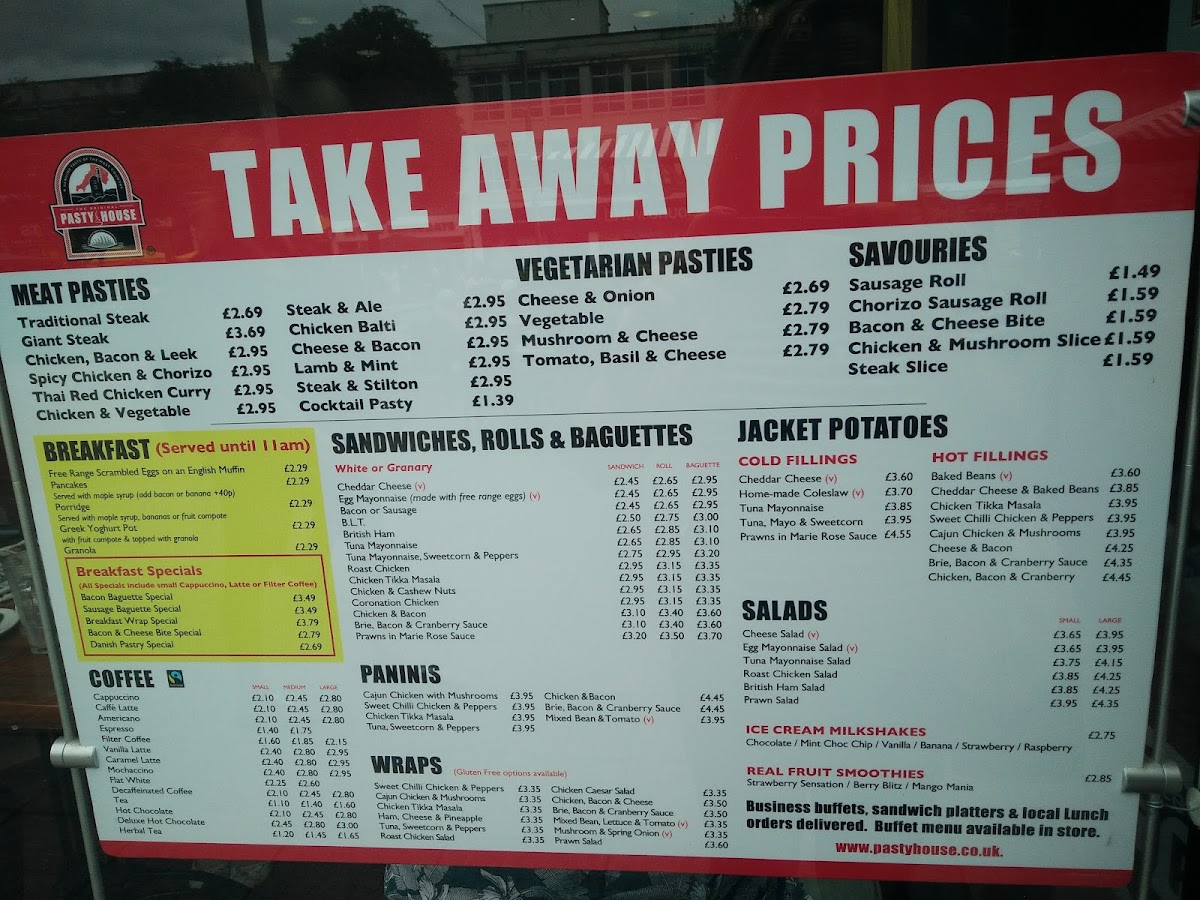 Welcome to The Original Pasty House Plymouth, nestled in the heart of Plymouth at 126 Armada Way. This charming cafe offers a delightful menu focused on the quintessential British pasty, along with an array of sandwiches, rolls, and baguettes perfect for a quick bite or a leisurely lunch. Expect to find delicious fillings like cheddar cheese, chicken tikka masala, and succulent prawns in Marie Rose sauce. The salads are equally tempting, featuring fresh ingredients that cater to a lighter palate.